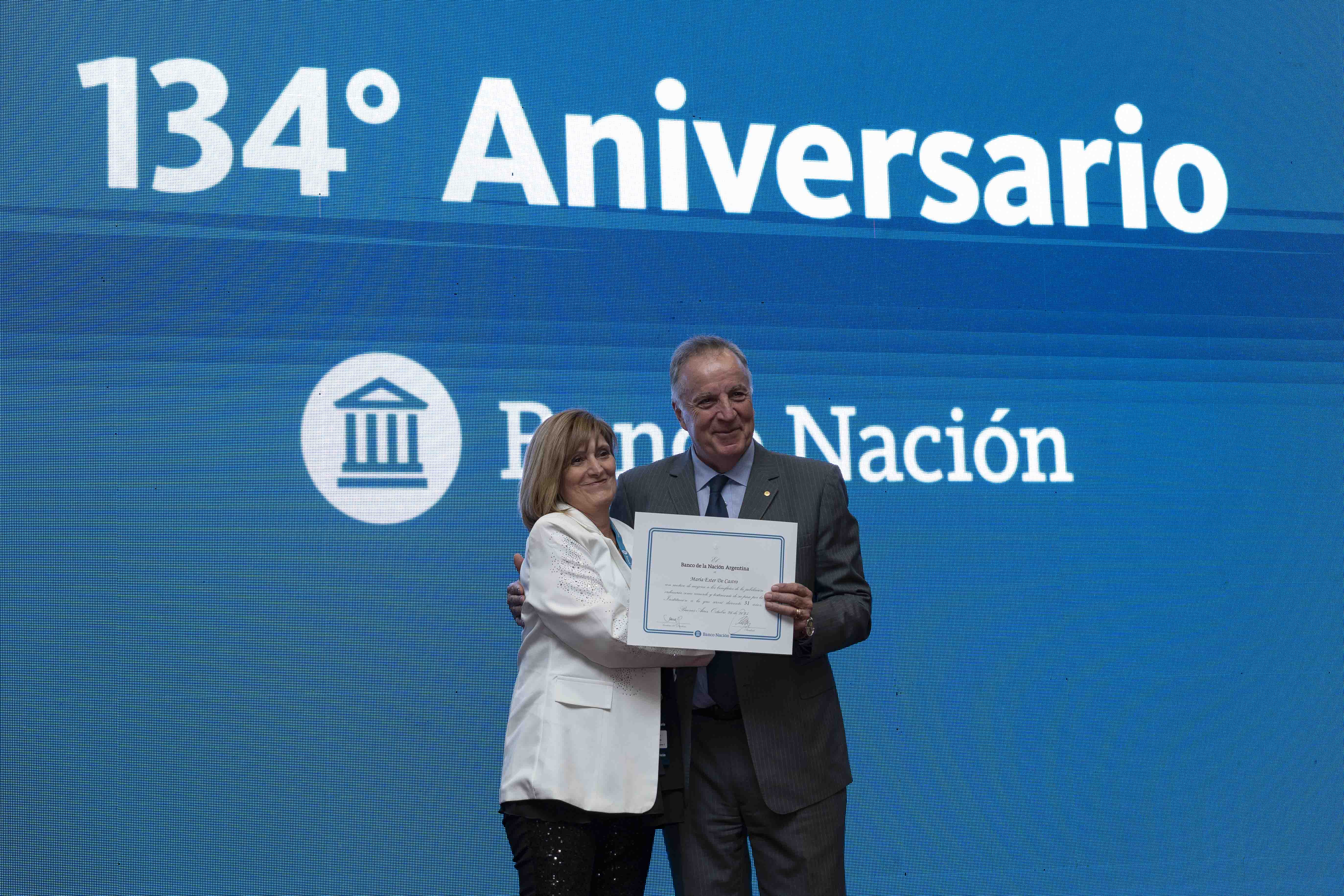 Con el lema “Nacimos para impulsar el progreso de los argentinos, y seguimos haciéndolo”, el Banco Nación celebró su 134° aniversario con un acto encabezado por el presidente de la entidad, Daniel Tillard, acompañado por el Directorio y el gerente general, Gastón Álvarez, en una ceremonia que reunió un año más al personal del Banco y sus familias.