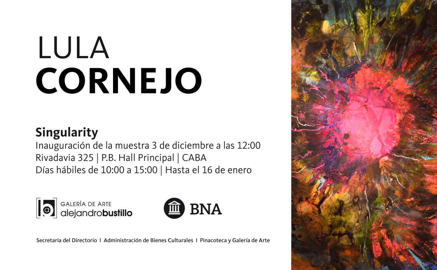 La Galería de Arte “Alejandro Bustillo” inaugurará la muestra “Singularity”, de la artista Lula Cornejo, el próximo miércoles 3 de diciembre, a las 12 horas, en el hall principal de la Casa Central del Banco Nación.