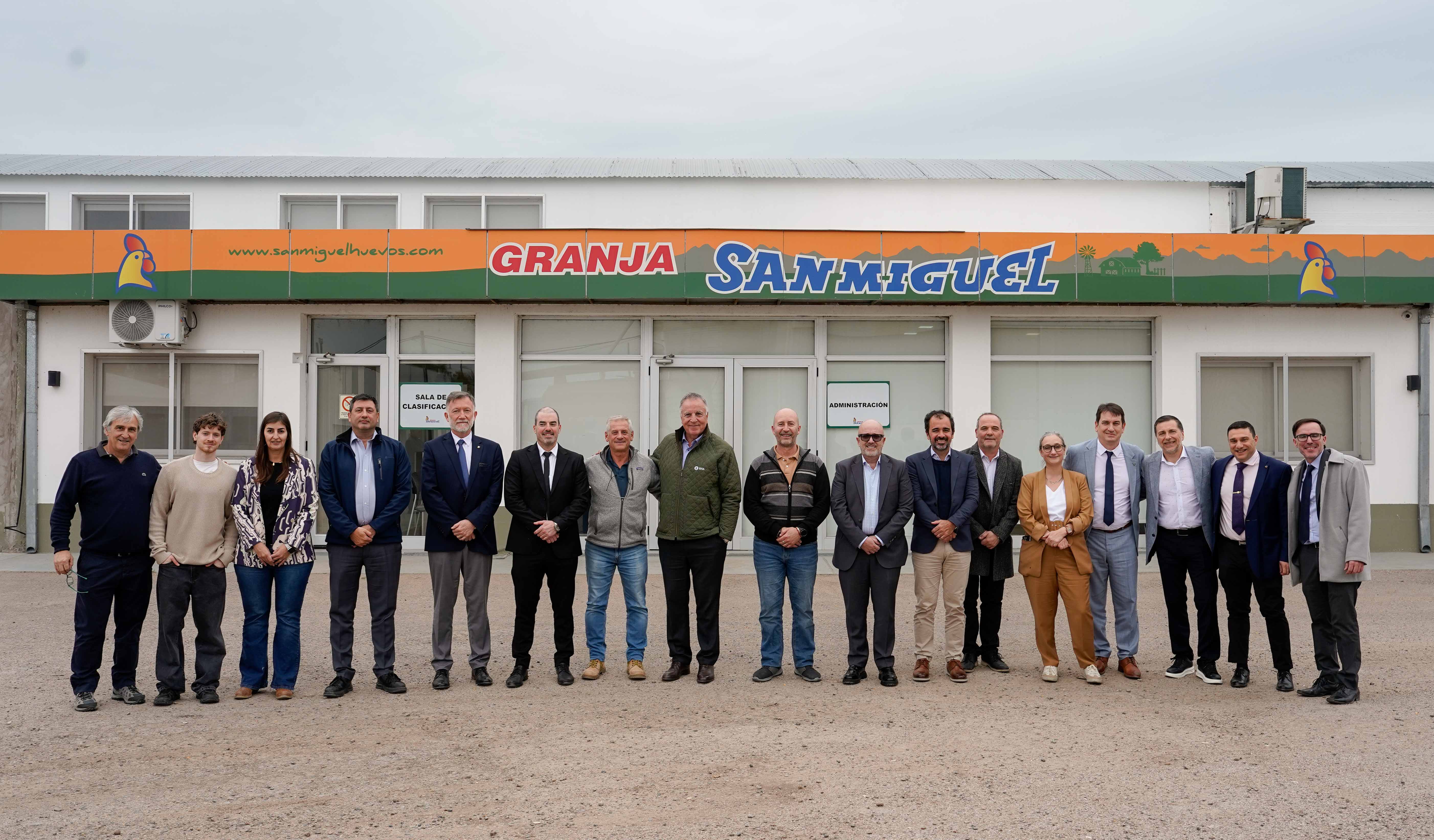Más tarde, la comitiva visitó Granja San Miguel S.A., empresa familiar dedicada a la cría de aves y producción de huevos, con tecnología de punta y plantas de procesamiento de huevos líquidos, en polvo y alimento balanceado. Posicionada entre las 20 empresas líderes de Argentina, cuenta con importante participación en el mercado, comercializando sus productos hasta Tierra del Fuego y Chile.